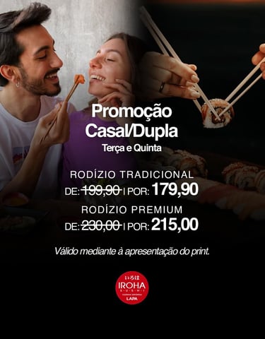 No Iroha Lapa, oferecemos uma experiência única de rodízio e à la carte da autêntica comida japonesa, com um cardápio diversificado e uma agenda para reservas.